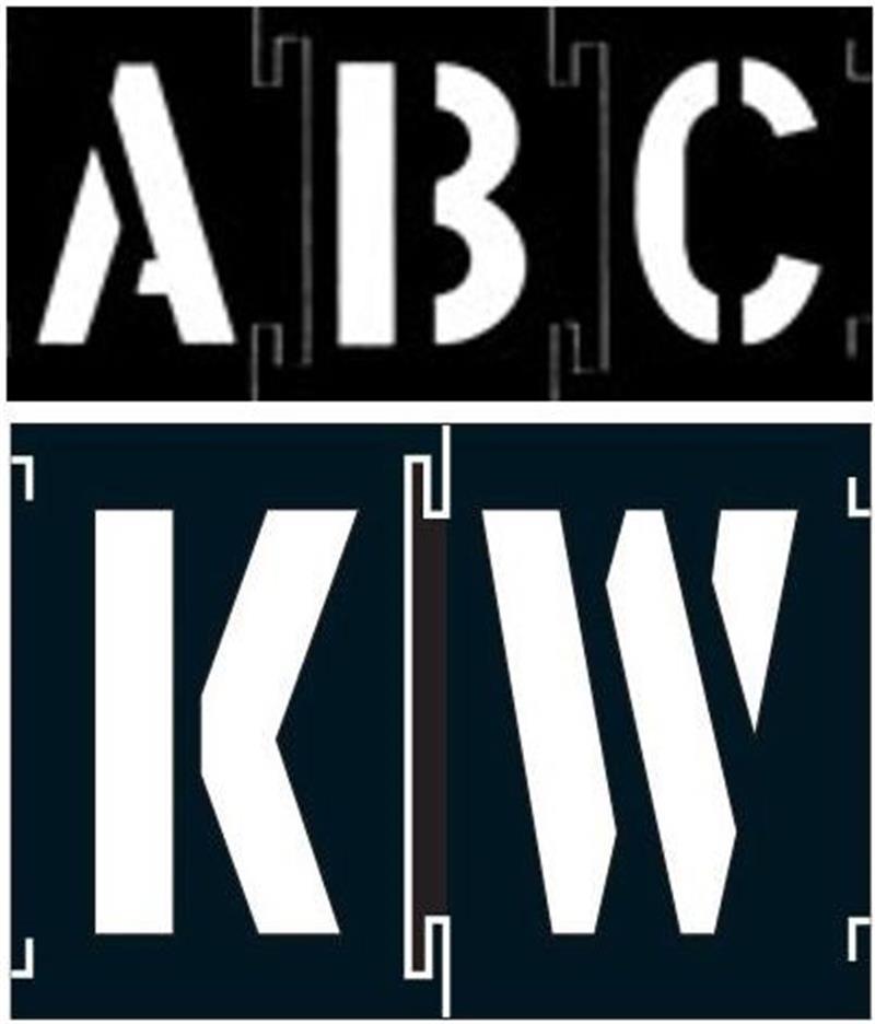 Einfach zu bedienende Schablonen sorgen für klare und lesbare Warnungen, Vorsichtsmaßnahmen und Schilder. Zeichen werden durch Ineinandergreifen von benachbarten Nuten verbunden. Leicht zu demontieren. Kann mit einer Vielzahl von Sprüh- oder Pinsel-Farben verwendet werden. Buchstaben enthalten jeweils 6 A, E, R und S; jeweils 3 aller anderen Buchstaben. Zahlen enthalten jeweils 3 von 0 bis 9. Enthalten auch 3 kleine Abstandshalter, 3 größere Abstandshalter, 3 Punkte, 3 Bindestriche, 3 Dollarzeichen ($) und 3 Et-Zeichen (&).